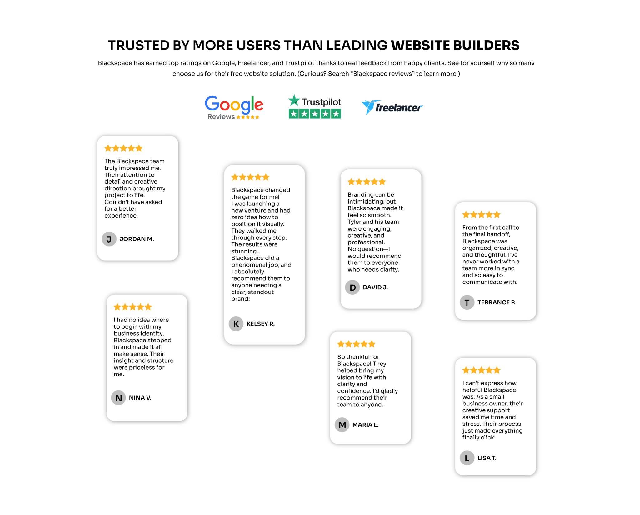 More than 95% of businesses we’ve helped say they loved the results, and around 20% choose to work with us again or refer others to Blackspace.